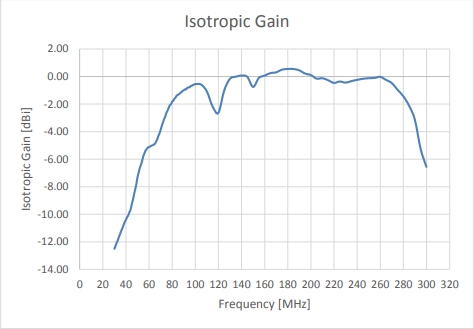 - Isotropic Gain: -12.51 to 0.55, see Figure 2 and Table 1