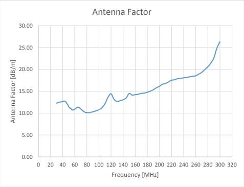 - Antenna Factor: 10.8 to 26.3, see Figure 3 and Table 1